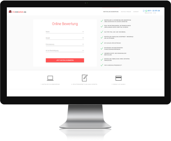 Der Interessent füllt dabei das Bewertungsformular auf www.kfzmitdefekt.de aus und erhält innerhalb kürzester Zeit ein kostenloses und unverbindliches Angebot für sein defektes Auto.